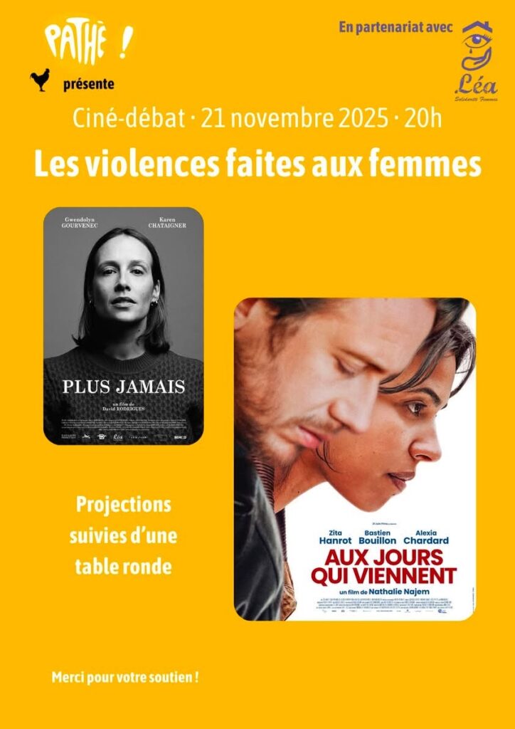 Vendredi 21 novembre à 20h, Pathé Carré Sénart vous invite à une soirée ciné-débat au profit de l'association Léa Solidarité Femmes.
