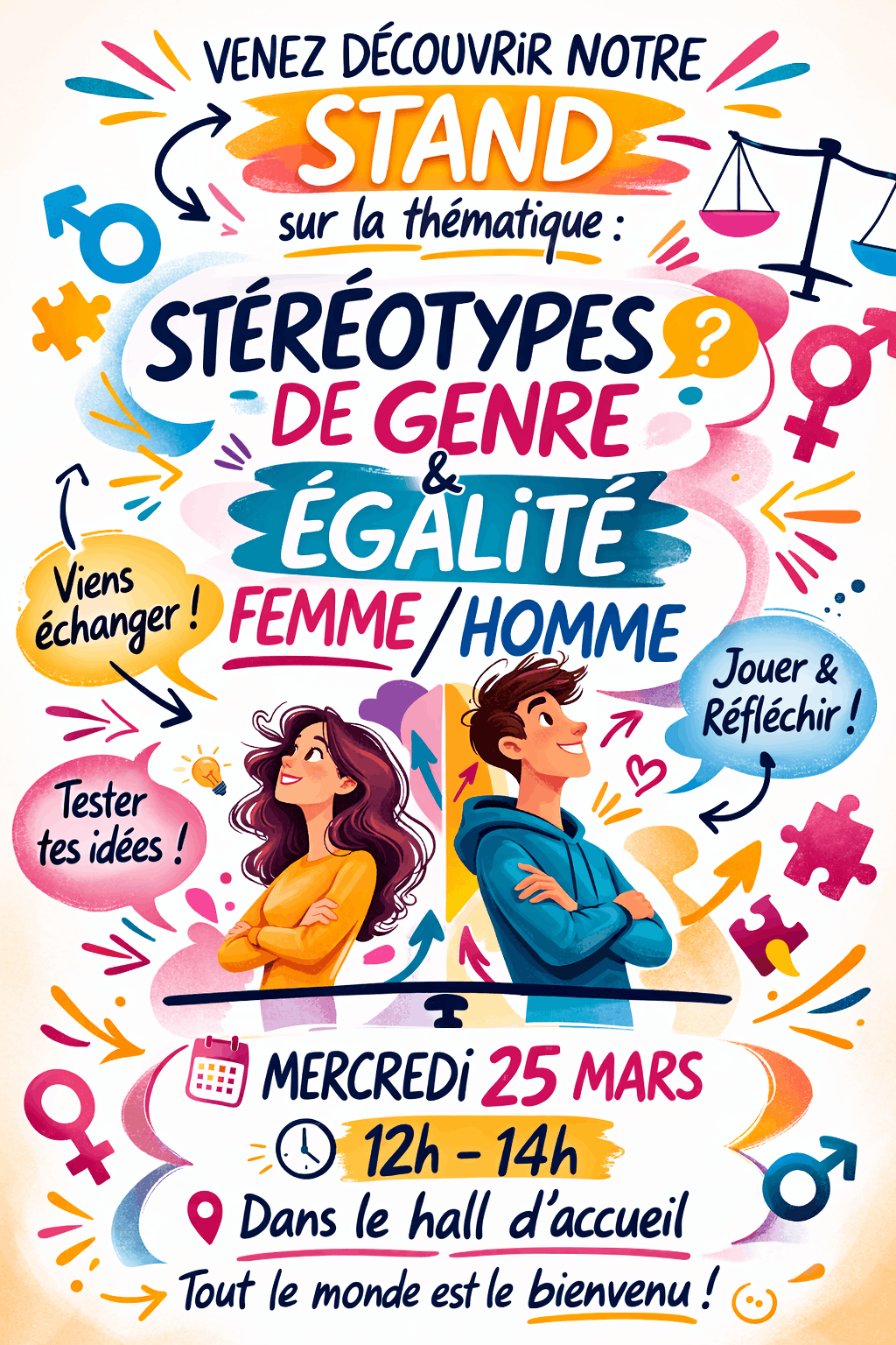 Échangez, jouez et testez vos idées sur les stéréotypes de genre avec le stand d'animation de la Plateforme Acti+ Lieusaint.